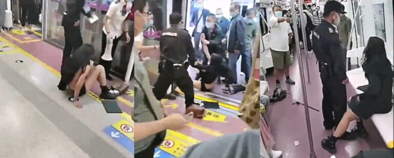 乘客郭某在地铁三号线前往青龙寺站时,与对面的乘客陈某因接打电话太大声惹众怒发生争执并轻微冲突。保安员陈某某见状赶到,要求两人下车处理分歧,但郭某拒绝。列车到达大雁塔站后,保安员强行将郭某拉下车,导致其部分身体暴露在外。