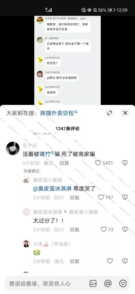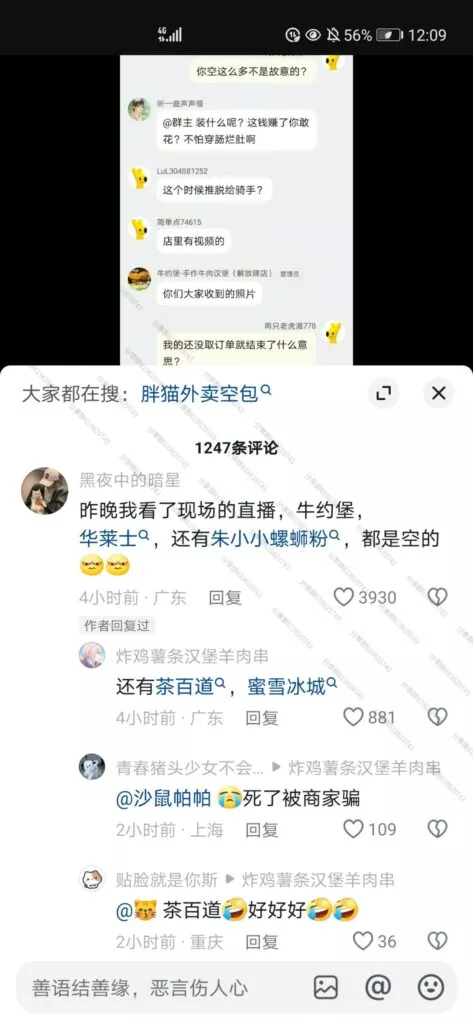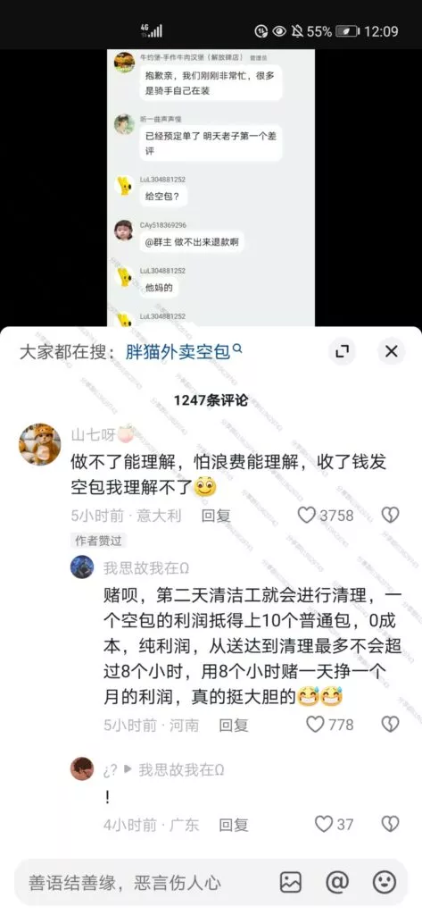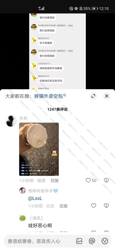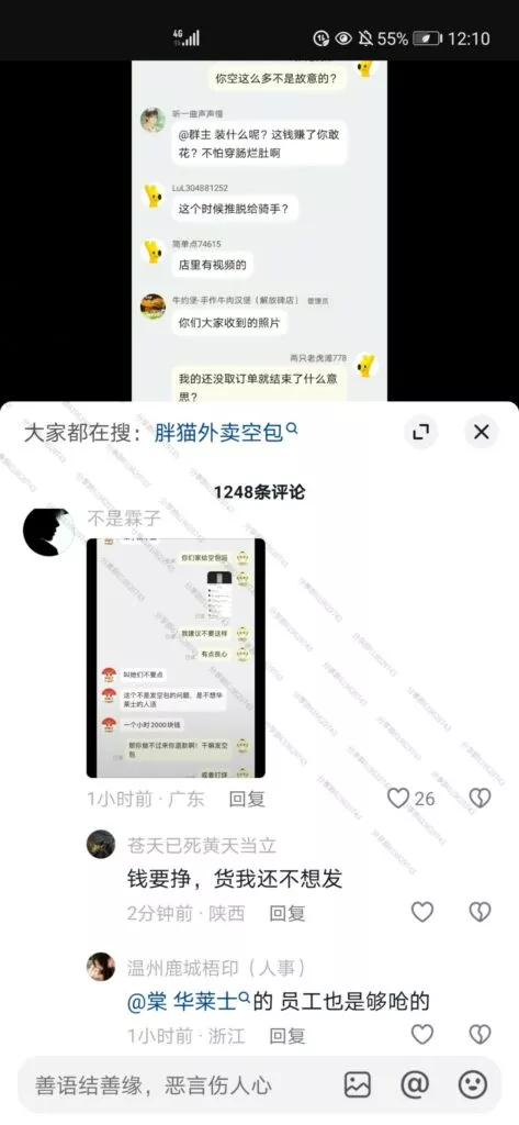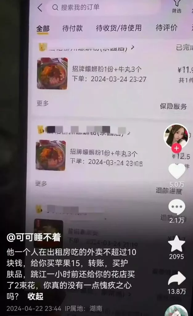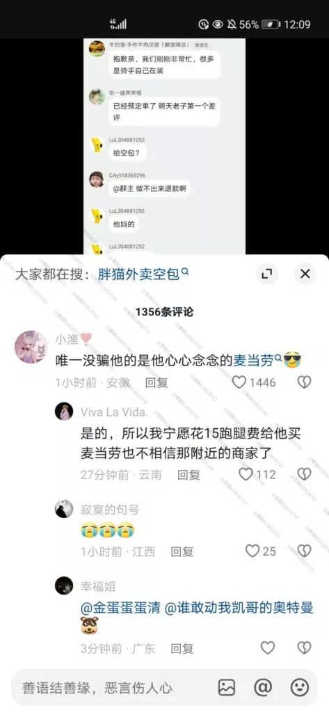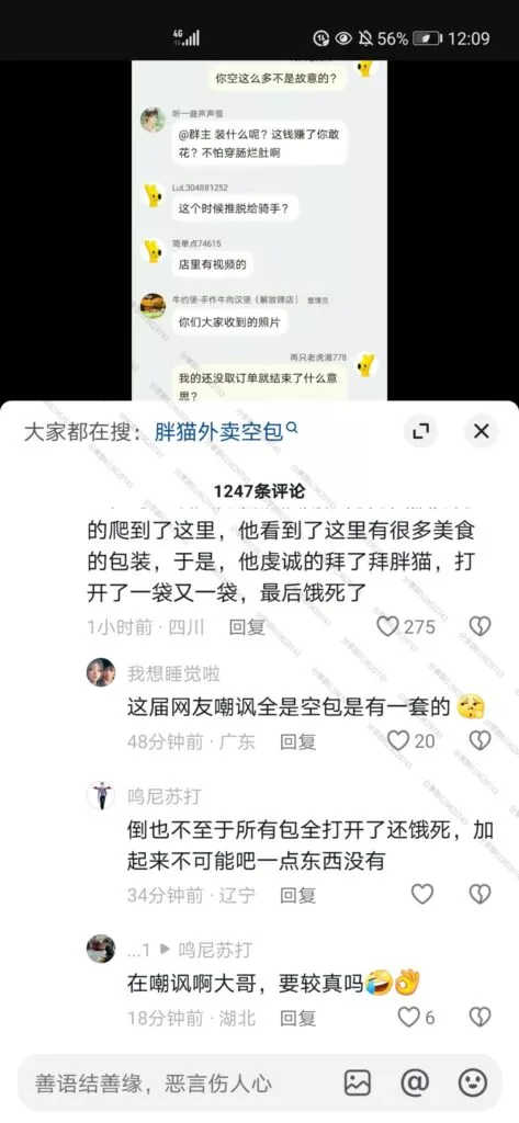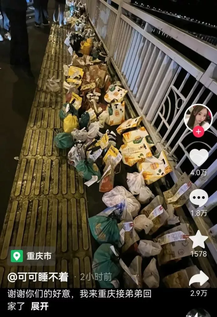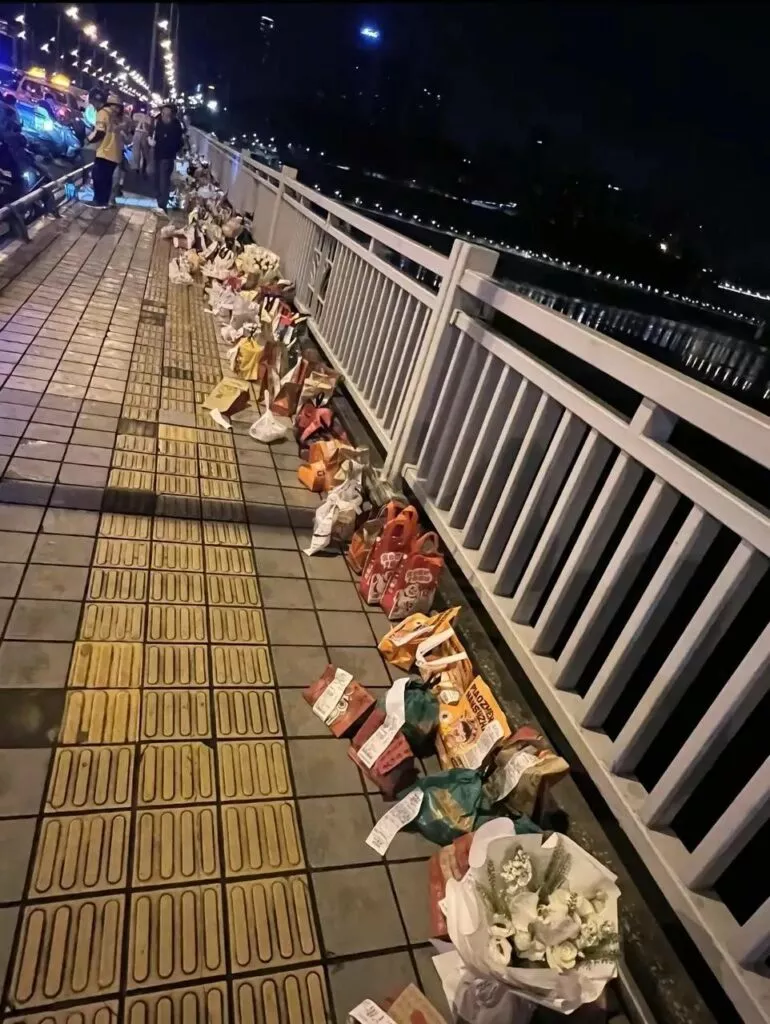 令人更加痛心的是,一些网友自发地纪念行为,为胖猫也就是跳江的纯爱战士买他最爱吃的螺蛳粉、华莱士、麦当劳等外卖,送至胖猫跳江的地方,结果有路过网友发现,大部分外卖全都是空包!!!