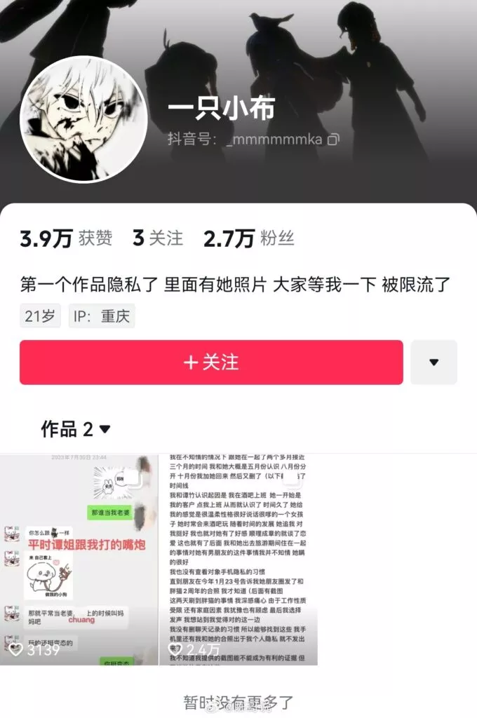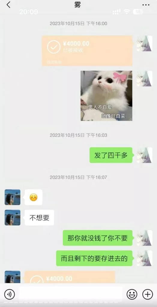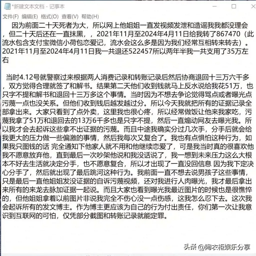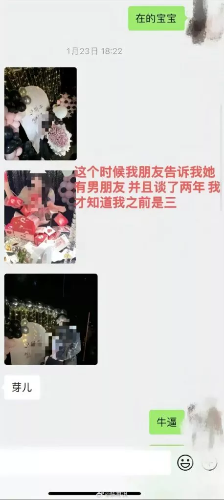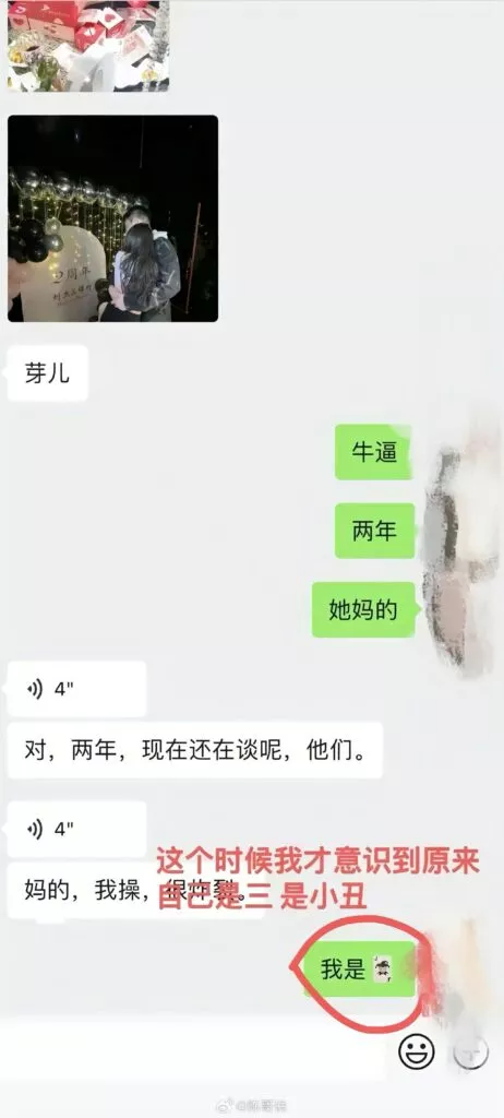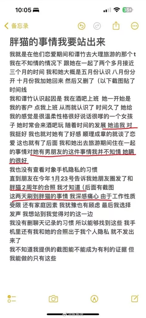 肥猫事件的最新进展如今已浮出水面,其间的纷争与揭露愈发引人瞩目。据其中一位当事人爆料,他/她就是被小三的那位。该当事人在完全不知情的状况下,与谭竹有了两年的恋情。直到肥猫事件曝光后,才得知事件的始末,并公开了相关的证据。原来,在谭竹与肥猫的交往期间,她一边向肥猫索不停的取金钱,一边不停的给肥猫戴着绿帽子!