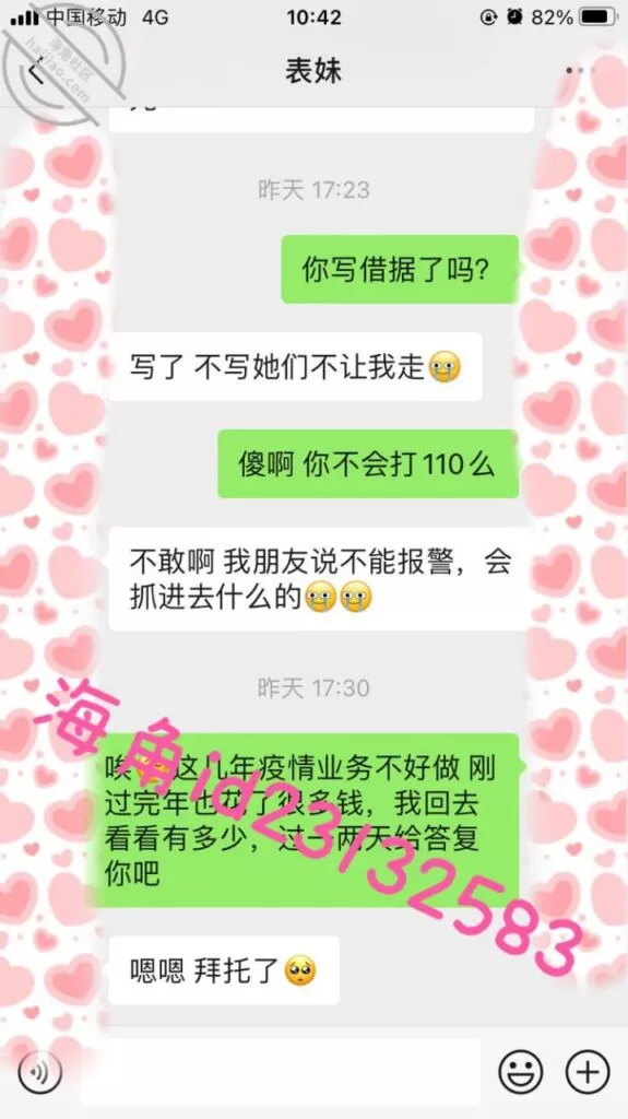 上周五用小号提醒表妹准时还款,果然她要还不上了,先吓一下她要发视频给家人,然后说9000陪我睡两晚,她就不理我了。