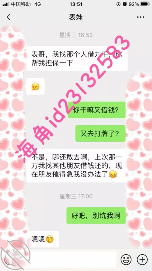 2 表妹欠债找我借钱2,假装第三人加好友