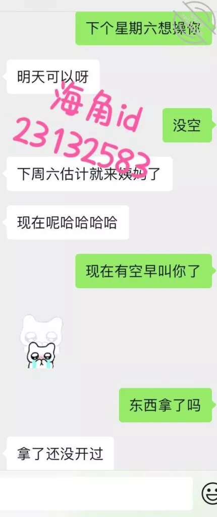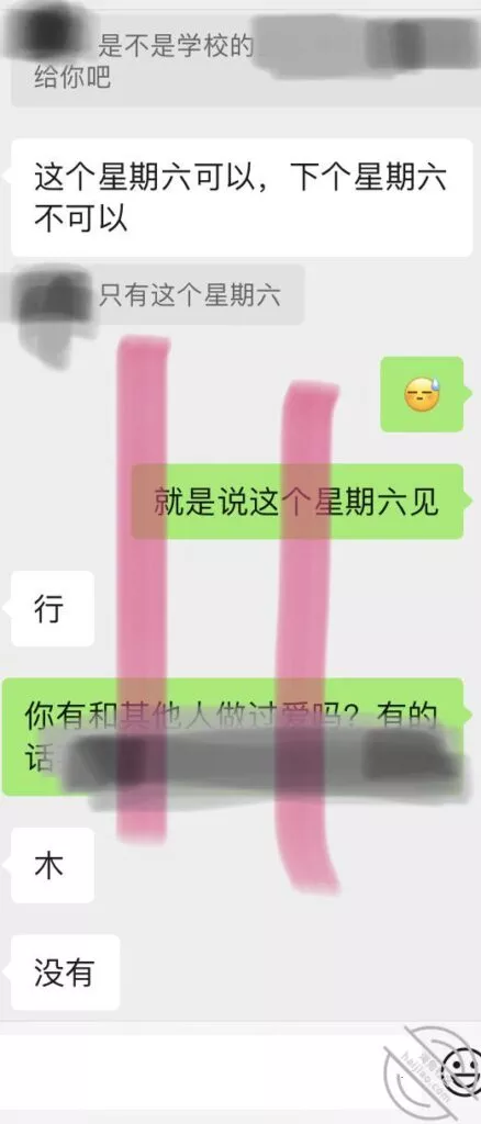 小T平日在学校住宿,约会那天从隔壁市学校打车过来,还穿着校服,做之前说好戴套的,所以我做了一半有感觉的时候再戴套继续做,微胖的肉感很好,视频改天弄好再发,节选一点聊天记录。