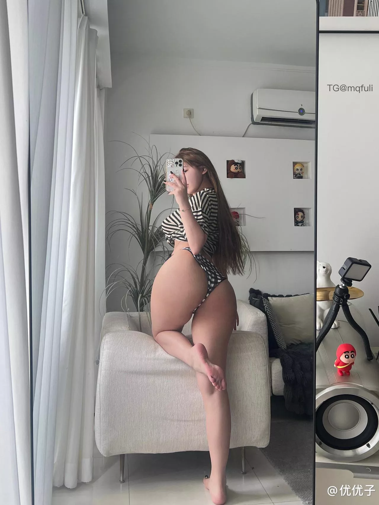 在这期【微密圈】中,小U优优子展现出她迷人的身材曲线,让人眼前一亮!她穿着一款白色露肩上衣,搭配性感的白色丝袜和牛仔短裤,展示了完美的视觉效果。微微弯腰时,露出性感的腰部和修长的大腿,简约的白色上衣与细腻的丝袜交织出令人难以抵抗的吸引力。她魅力的眼神和娇艳的脸庞,让人沉溺其中。她的动作既自然又充满挑逗意味,每一个细节都让人心动不已。在这期节目中,小U优优子完美诠释了性感与甜美的融合,带给观众无尽的魅力。这场秀,一定会让你爱上她!