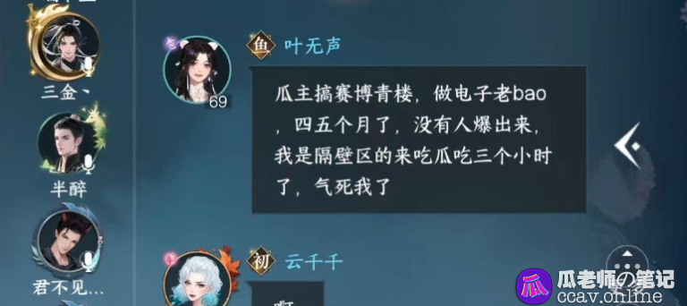 第一次知道逆水寒这游戏,是当年PPD爆出的大瓜,直播删除价值几十万的账号,引起全网轰动,现在逆水寒又搞了大瓜,有玩家组织的游戏内公会烟雨江南被曝银窝大瓜!赛博青楼,电子老鸨,还组织多人运动!