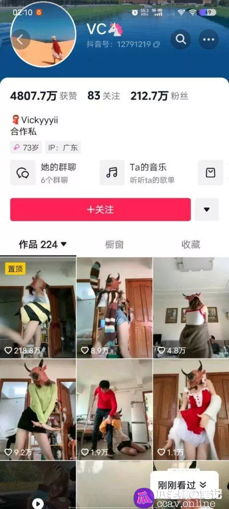 VC在抖音也算是个小网红了,拥有200多万粉丝。下面就是她的个人主页。