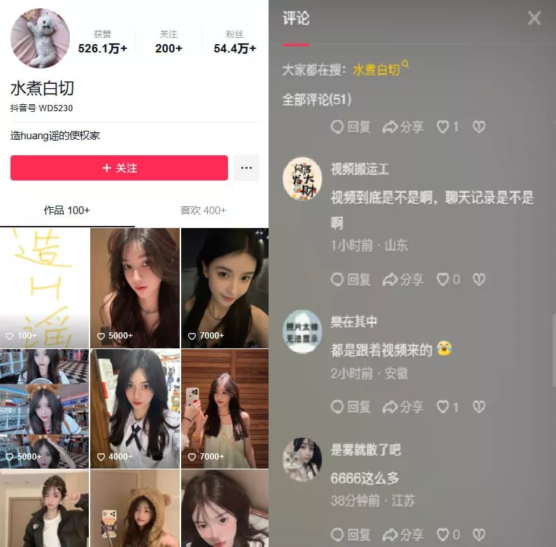抖音上的一位拥有50万粉丝的清纯网红因不堪黑料而震惊全国。近期,网上流传她与金主之间的不雅视频及多段露骨的聊天记录,这一切令她的形象顿时崩塌。曾凭借清纯形象积累54万粉丝的她,如今可谓彻底跌入了深渊。