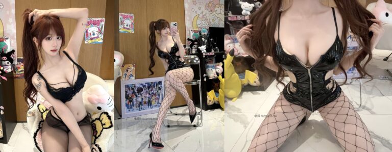 女神级美妆博主超蓝布罗莉展示最性感一面的黑色蕾丝内衣和透明丝袜写真(共12张图片)