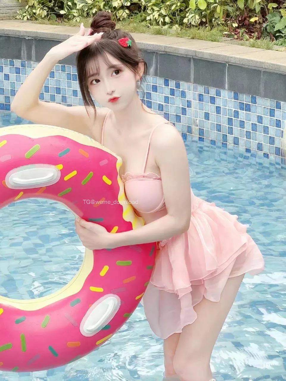 这次希希3选择了一些小草莓作为她的发饰,给人带来一丝俏皮与可爱的感觉。在照片中,您可以看到希希3坐在泳池边浅笑盈盈,或是尽情地在水中释放少女般的活力。这些极致的清纯与性感,让您沉浸在夏日的清凉之中。