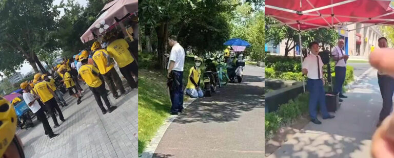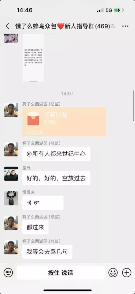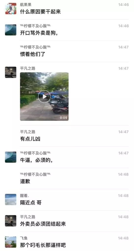 得知消息的外卖骑手们丢掉手里的工作,火速前往现场,支援被欺负的女骑手。