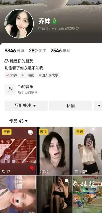 本期爆女主是抖音上面的一个小网红,名字叫做乔妹,同事也在斗鱼兼职主播,是语音区的,斗鱼粉丝倒是没几个,可惜的是抖音账号已经没有了。不过博主的这个身材和颜值还是挺不错的,为啥粉丝这么少呢?这福利视频是真的带劲啊,尺度又大。搔穴还挺粉嫩还会喷水。这么极品的一个博主居然被封号了,可惜了。难道是平时直播老是玩大尺度擦边被超管发现了嘛?就这身段,这皮肤,这搔穴,把视频给超管一发,超管不得来上几发?