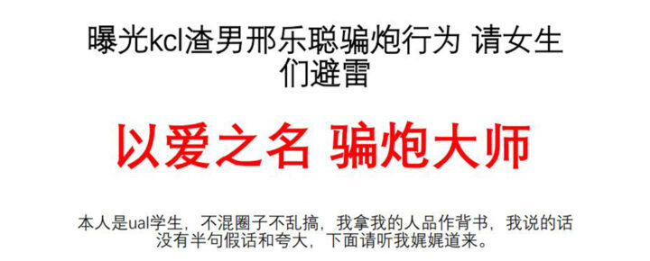 英国留学圈27页PPT曝光KCL大学渣男邢乐聪以恋爱名义骗炮驰名中外[内附原件]